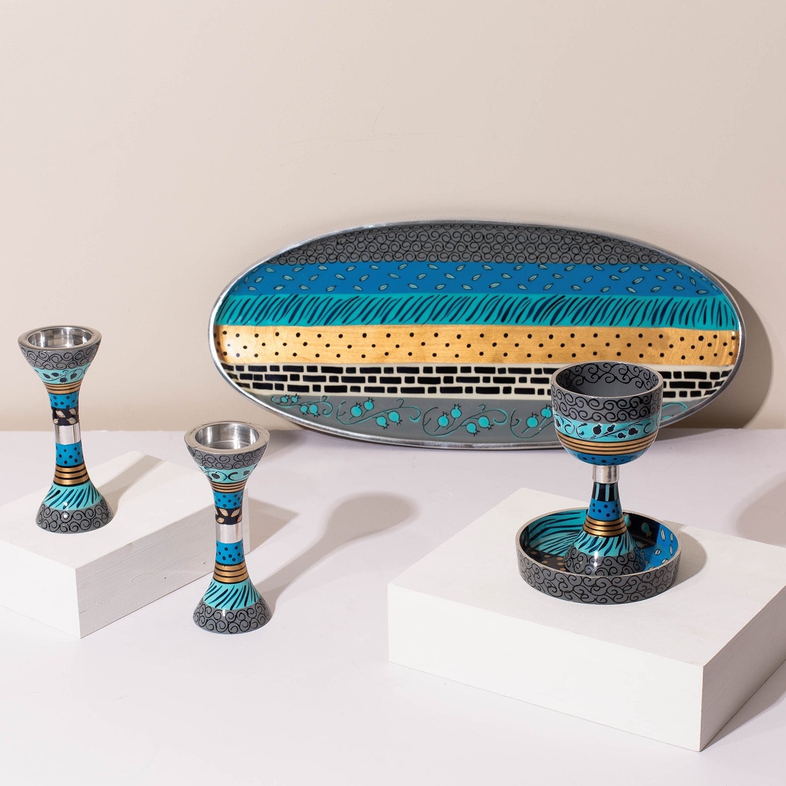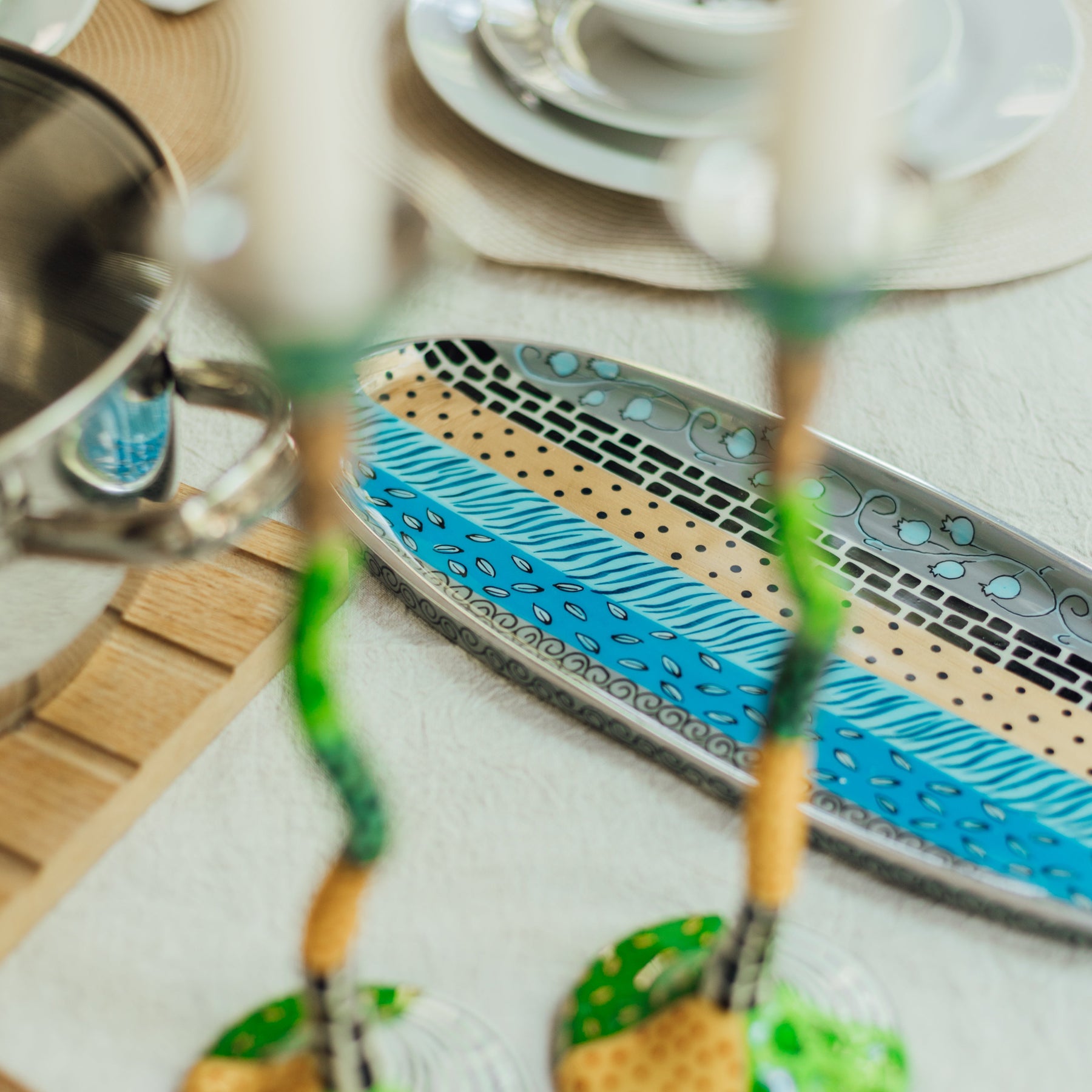 מגש הגשה בעיצוב פסים צבעוני – בעבודת יד ייחודית מאלומיניום יצוק – דגם Ovela