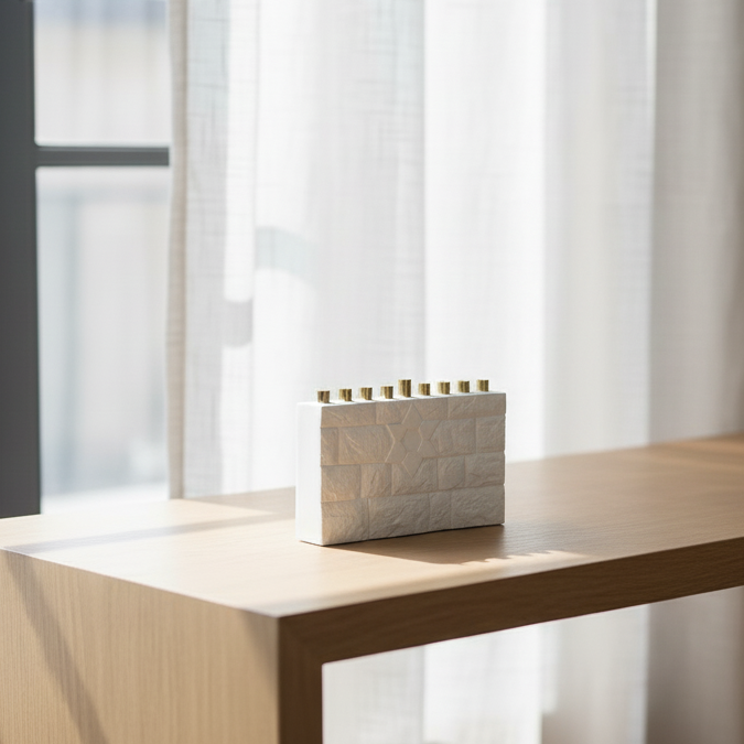 שילוב בין אסתטיקה אורבנית לבין קווים גאומטריים אלגנטיים – כל חנוכייה נוצרת בעבודת יד בגוונים טבעיים ועכשוויים.