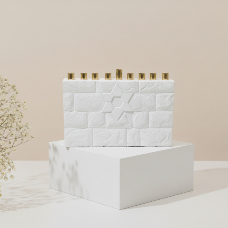 חנוכיית בטון לבנה בעיצוב יוקרתי עם מגן דוד – דגם COTEL