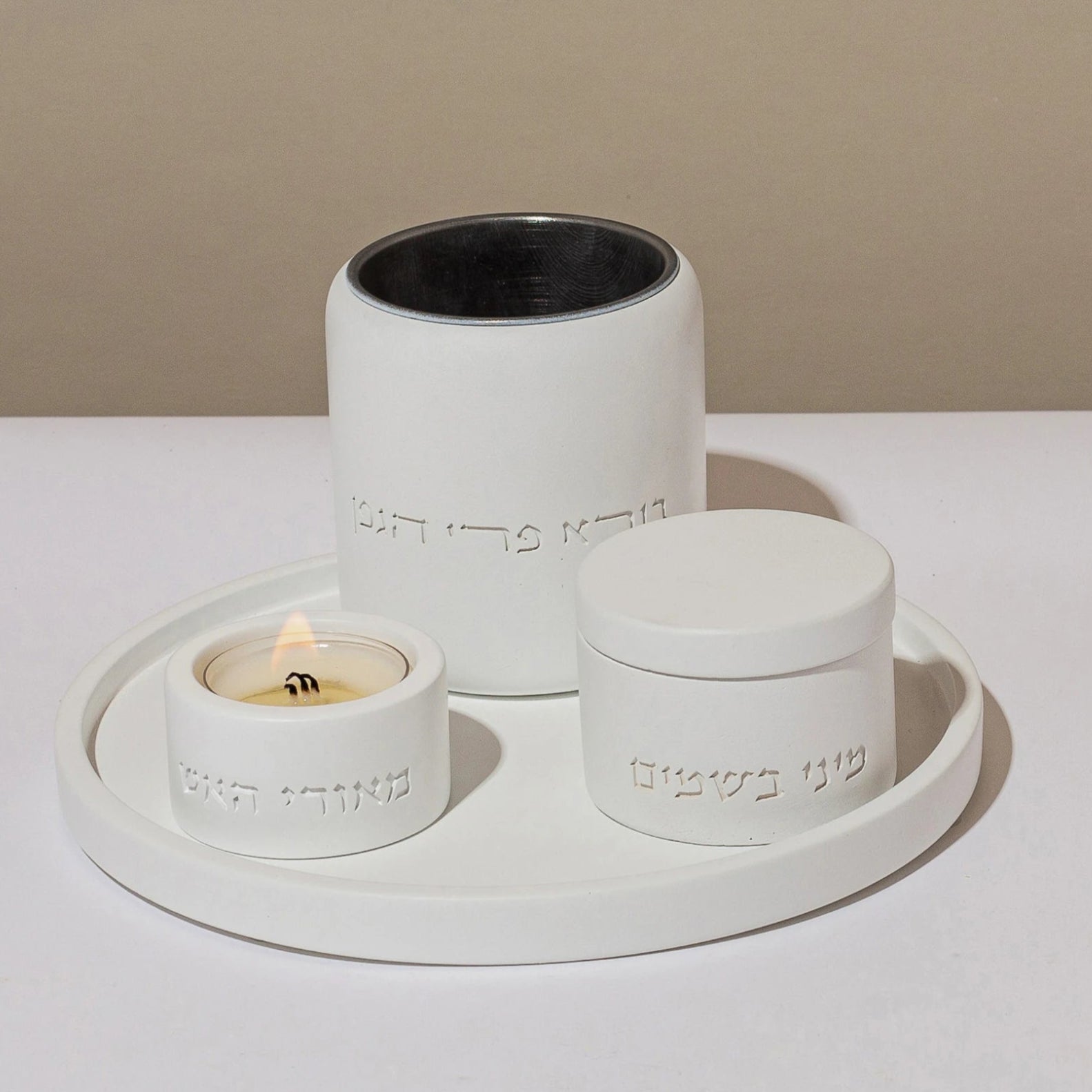 התחילו את השבוע עם טקס הבדלה מלא השראה, בעזרת סט ייחודי המשלב עבודת יד מוקפדת, חומרים איכותיים ועיצוב עכשווי. כל פריט בסט עשוי מבטון טבעי בגימור נקי ומדויק, המעניק מראה אלגנטי, עמיד ונצחי.