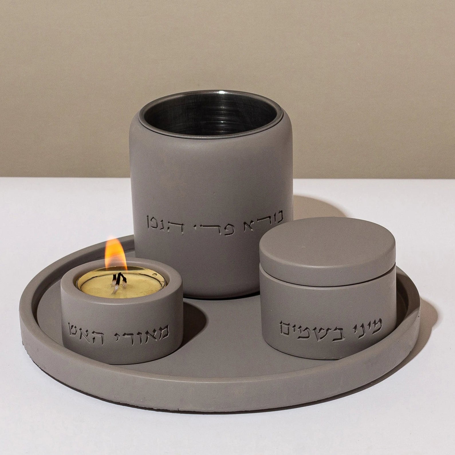 סט הבדלה אלגנטי ויוקרתי מבטון נקי - דגם Luxe