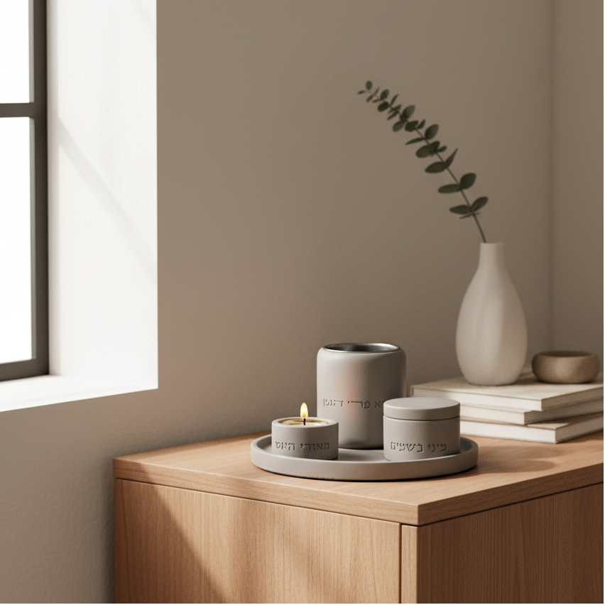 סט הבדלה יוקרתי בעבודת יד מבטון טבעי – שילוב מושלם של מסורת ויוקרה מודרנית ✨