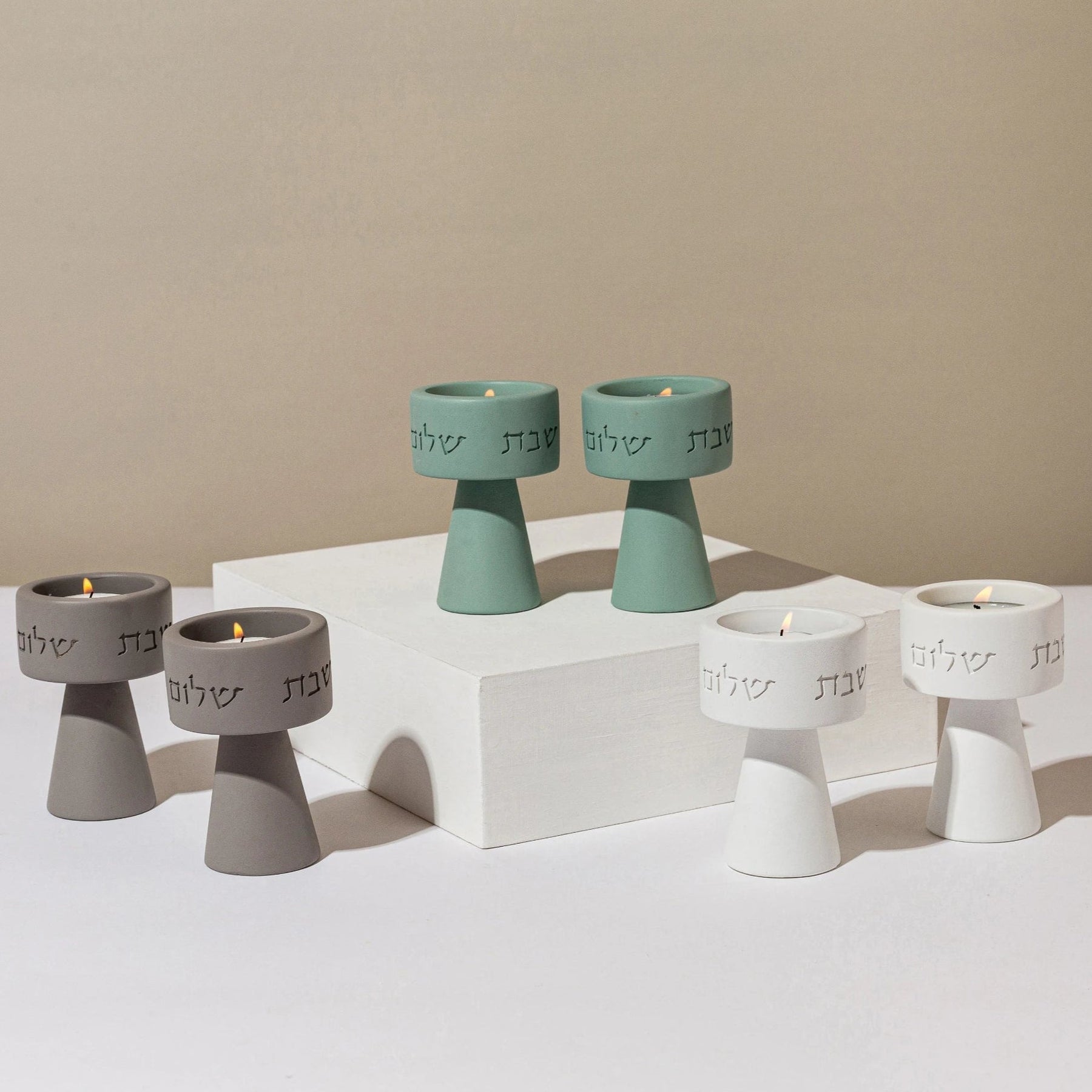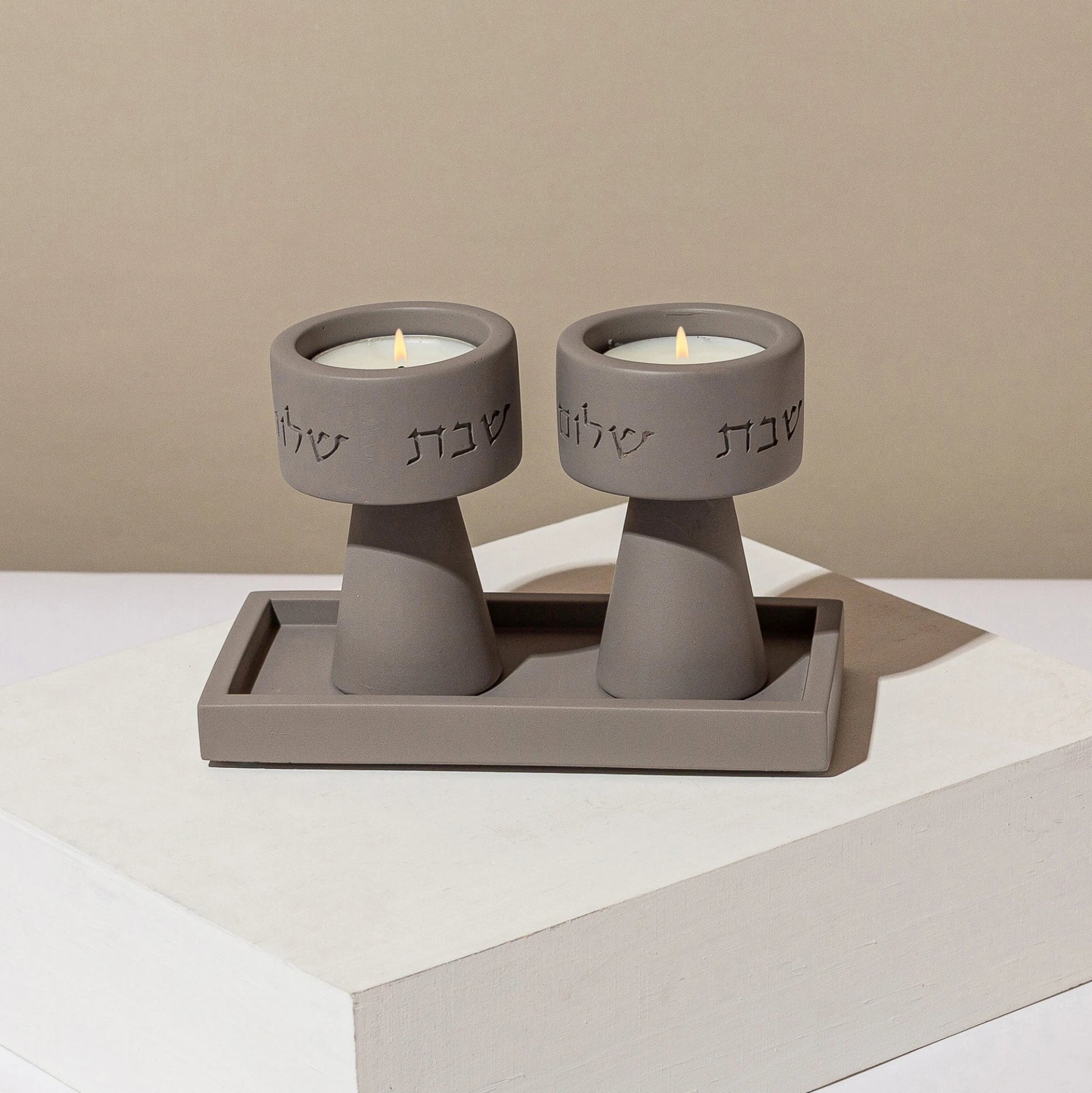 סט פמוטים לשבת עם מגש בטון אלגנטי – דגם City Lights ✨