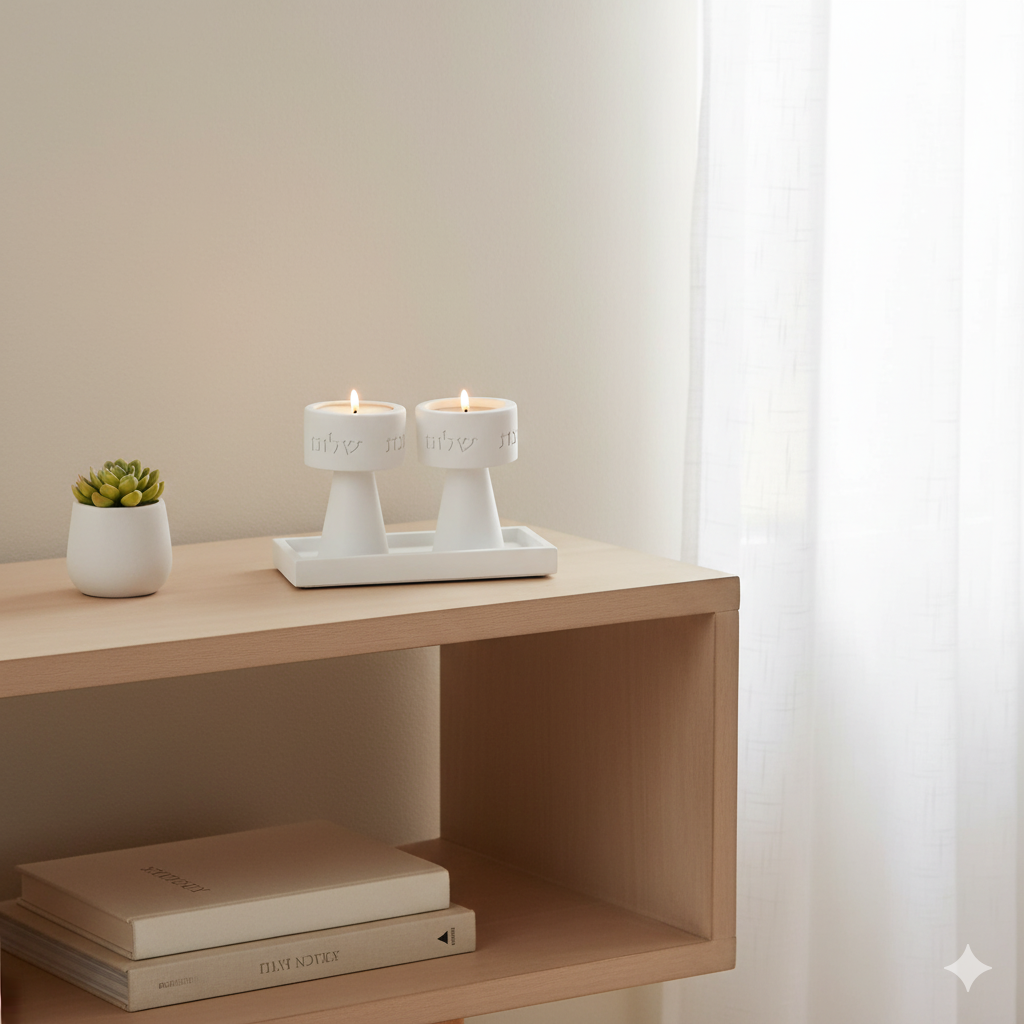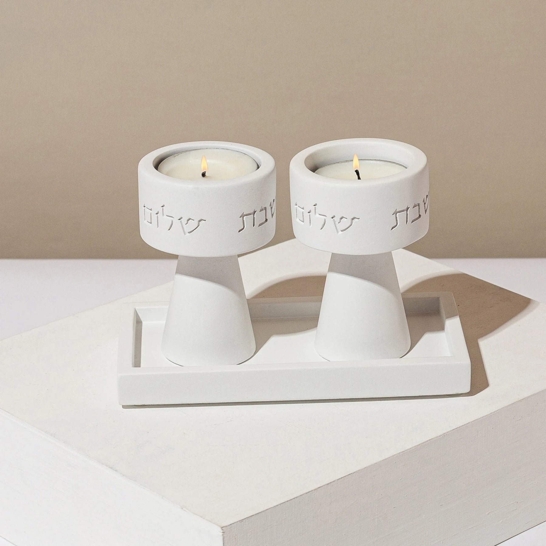 סט קלאסי של פמוטי שבת ומגש בטון מעוצב- דגם Timeless Glow