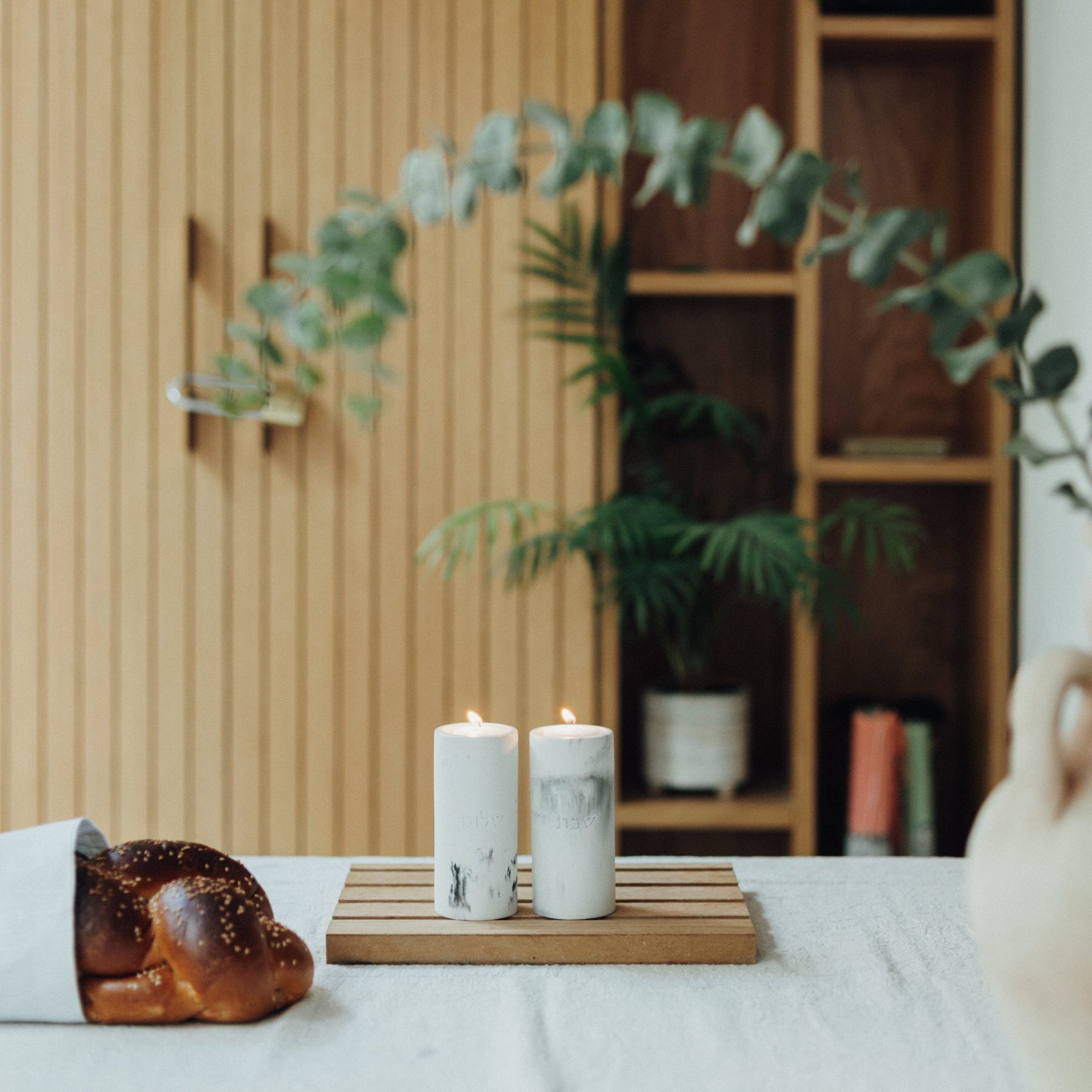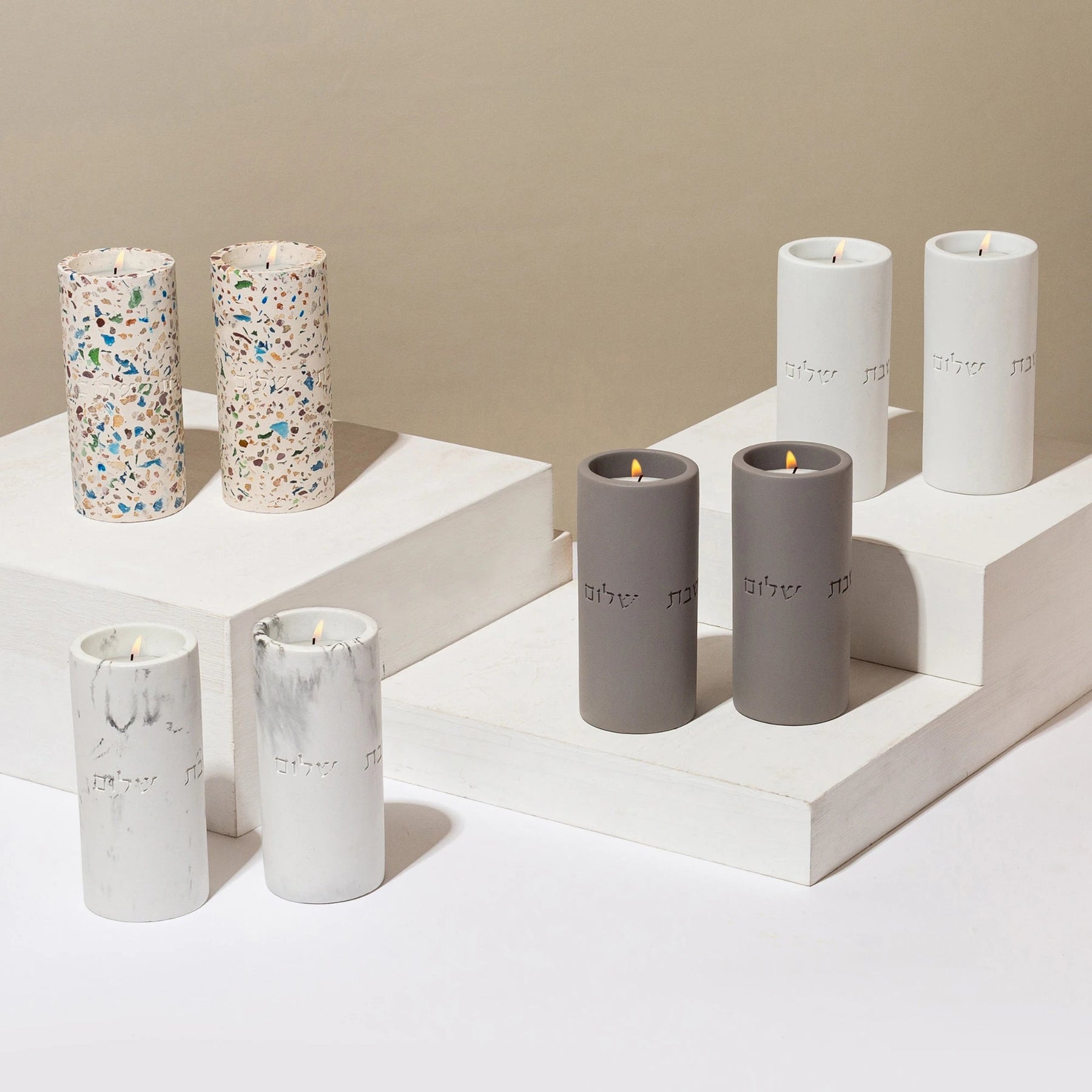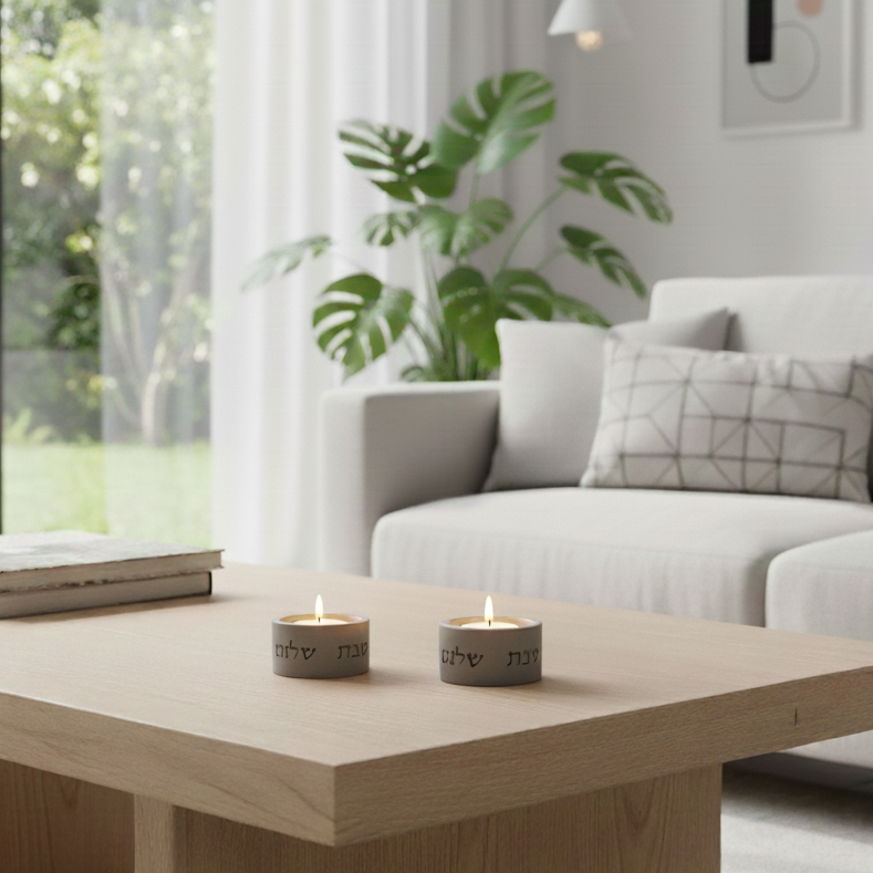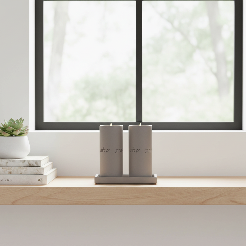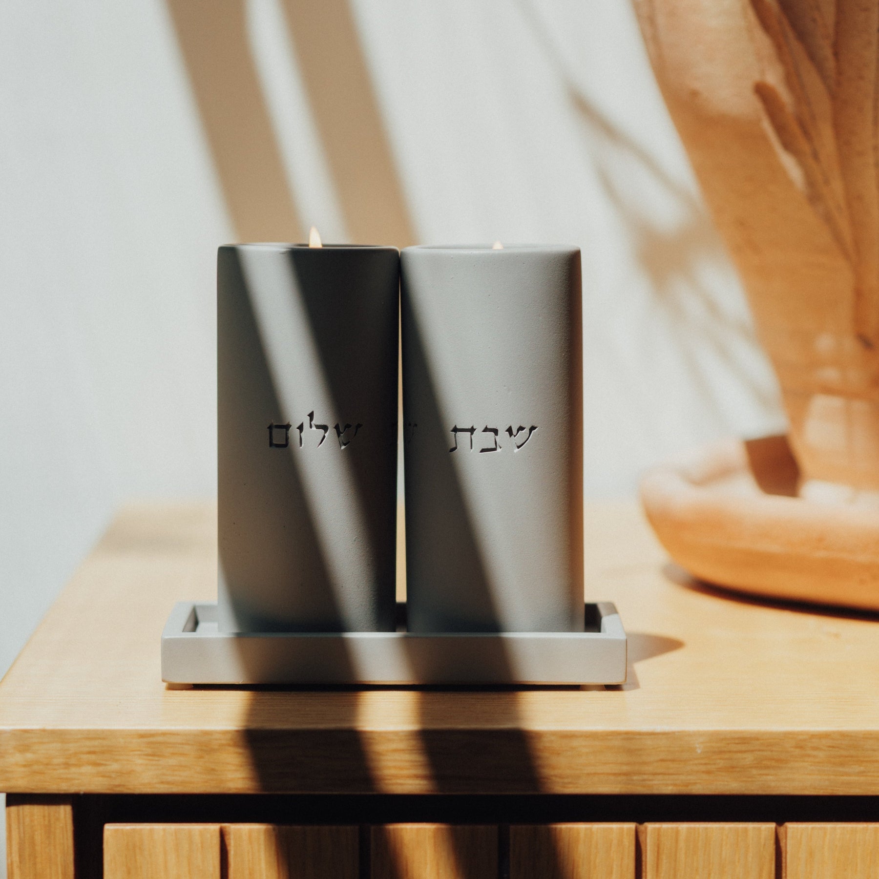 סט פמוטים מעוצבים לשבת על מגש בטון מודרני עם ברכת הדלקת נרות - דגם Urban Blessings